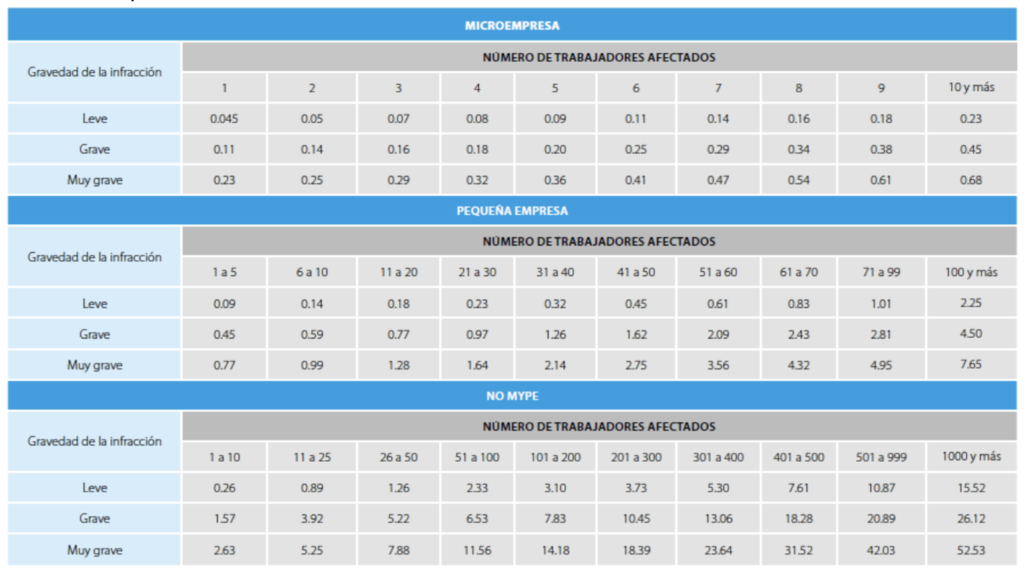 Las sanciones varían según el tamaño de la empresa y el número de trabajadores afectados, pudiendo alcanzar montos considerables para las empresas No MYPE.
